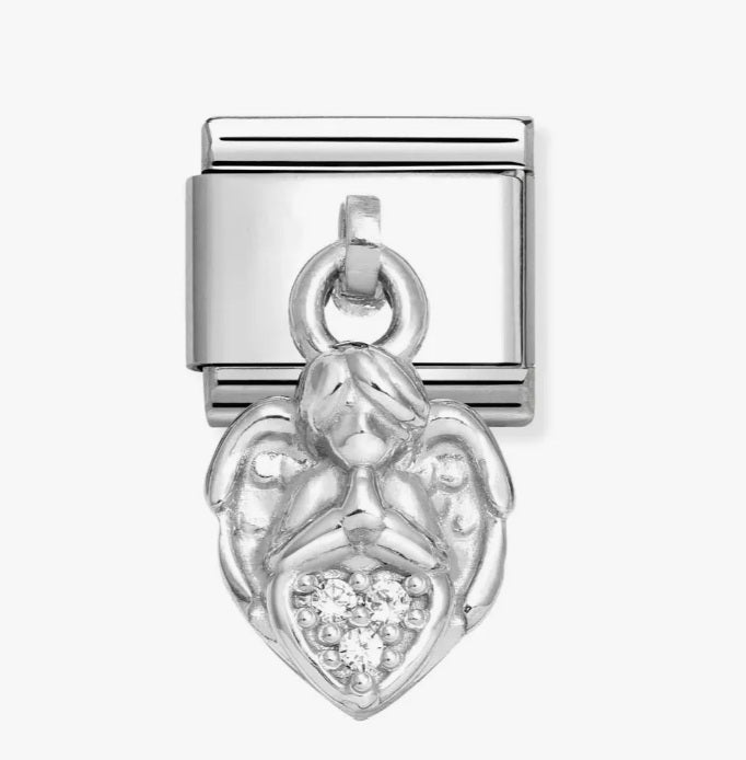 NOMINATION Classic Silver Angel with CZ Heart Pendant Charm