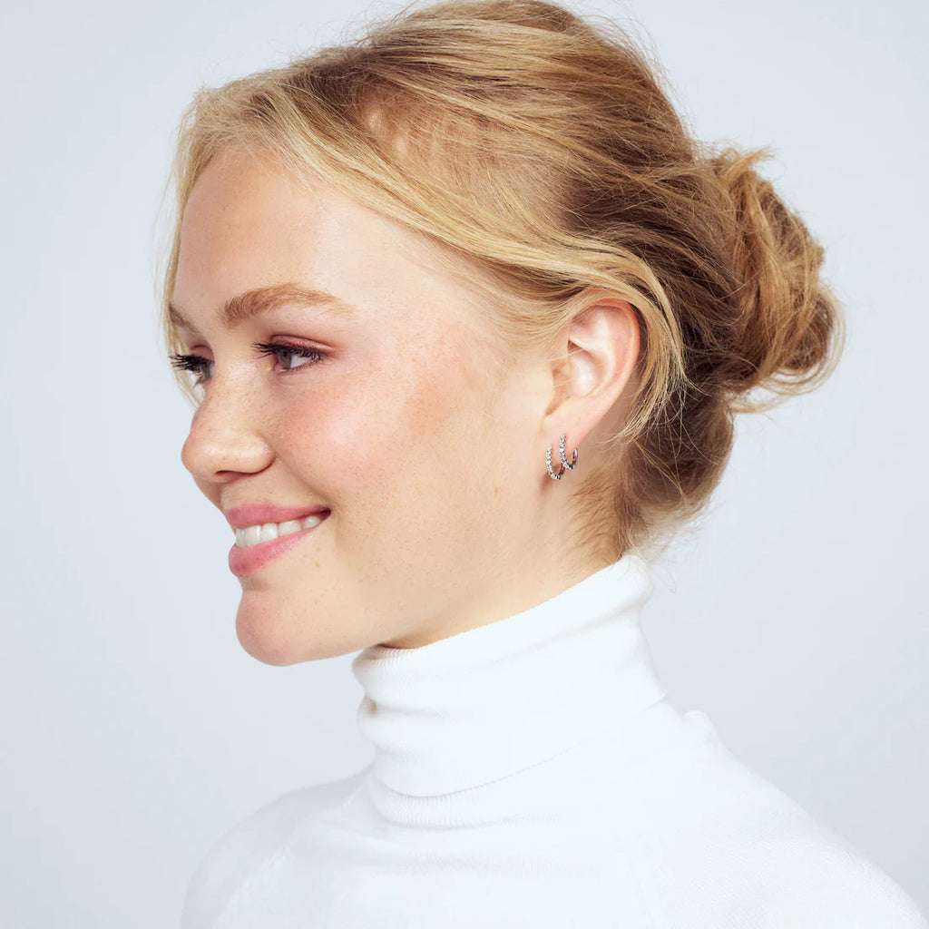 Earrings made of rhodium plated 925 Sterling Silver, a polished surface, and handset with facet cut multicoloured zirconia.
