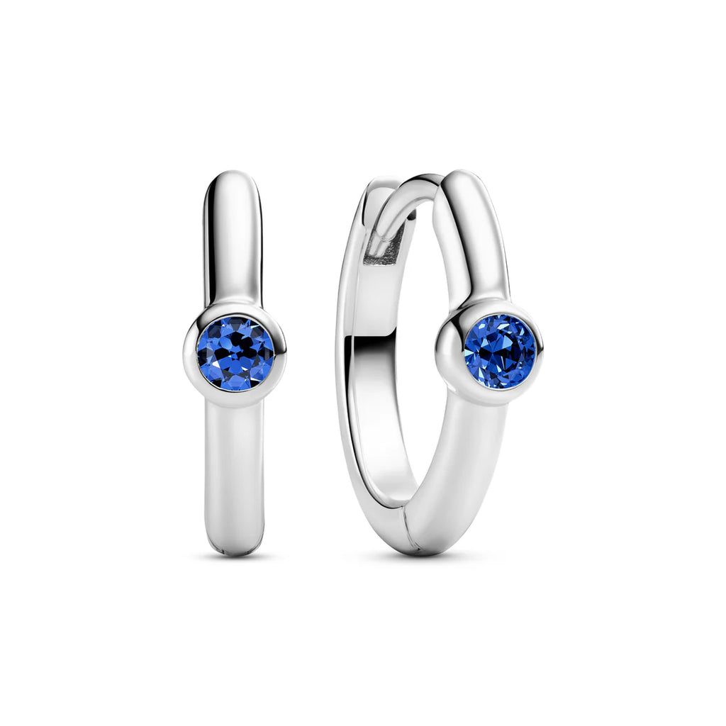 Earrings made of rhodium plated 925 Sterling Silver, a polished surface, and handset with facet cut blue zirconia.