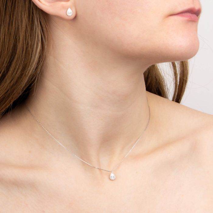 Inspired by mesmerising light reflections on a sunny day, this teardrop necklace is the perfect addition to any jewellery collection to provide a hint of luxury. Crafted in 9ct gold with a diamond cut finish, this necklace features sparkling diamonds that reflect the light beautifully. Why not pair with the matching stud earrings to complete the look!
