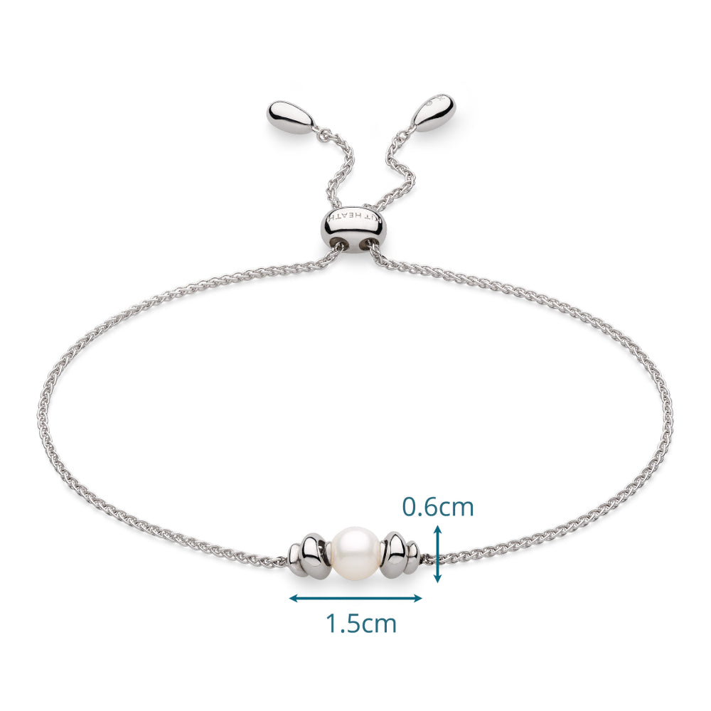 Inspired by the natural beauty of the coast, this elegant Sterling Silver toggle bracelet pairs a lustrous natural Freshwater Pearl with our signature miniature Coast Tumble pebbles for a soft, organic feel. Designed to match our bestselling Coast Tumble Pearl necklet, the bracelet features a sleek slider toggle clasp, offering an adjustable fit for effortless comfort and styling. Whether worn alone or layered with other favourites, it brings a subtle glow and timeless charm to any look—ideal for bridal wear, gifting, or adding a refined touch to everyday outfits.