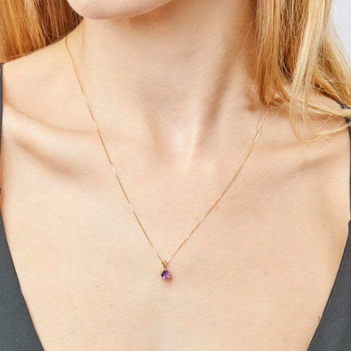 Elements Gold February Birthstone Amethyst Necklace in 9ct Gold