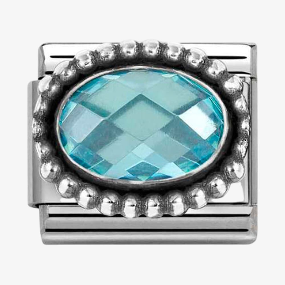 NOMINATION Stainless Steel & Silver Light Blue Cubic Zirconia Oval Beaded Charm