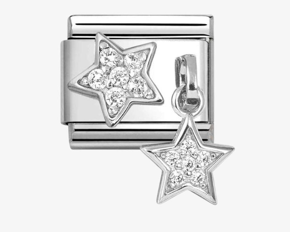 NOMINATION CLASSIC Stainless Steel & Silver Cubic Zirconia Double Star Charm