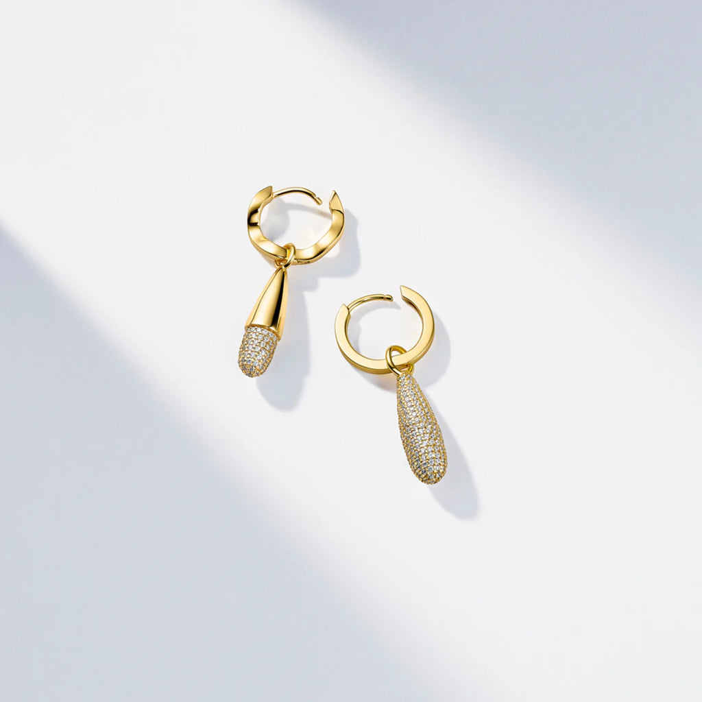 Charm for any compatible hoop made of 18 karat gold plated 925 Sterling Silver, a polished surface, and handset with facet cut white zirconia