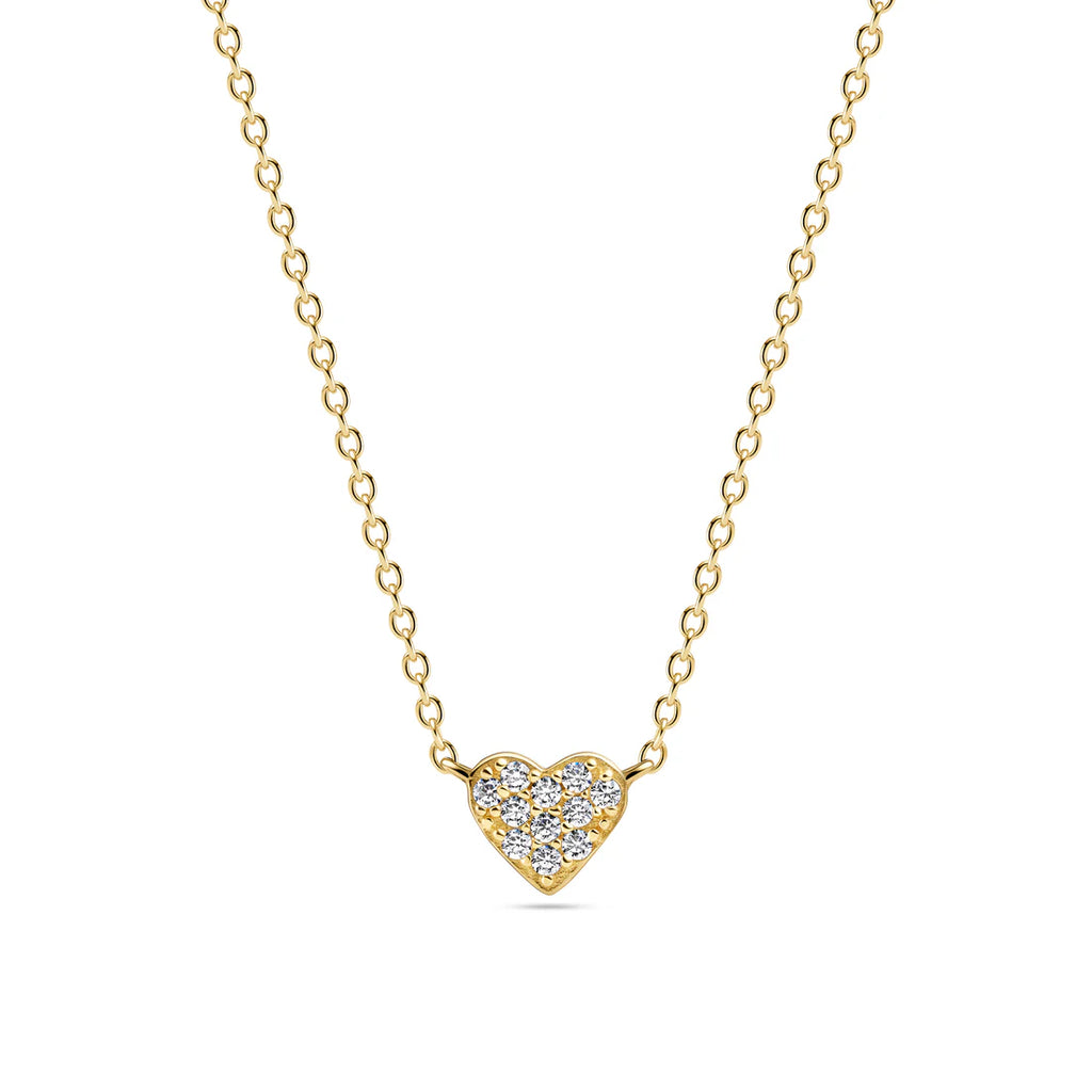 Necklace made of 18 karat gold plated 925 Sterling Silver, a polished surface, and handset with facet cut white zirconia.