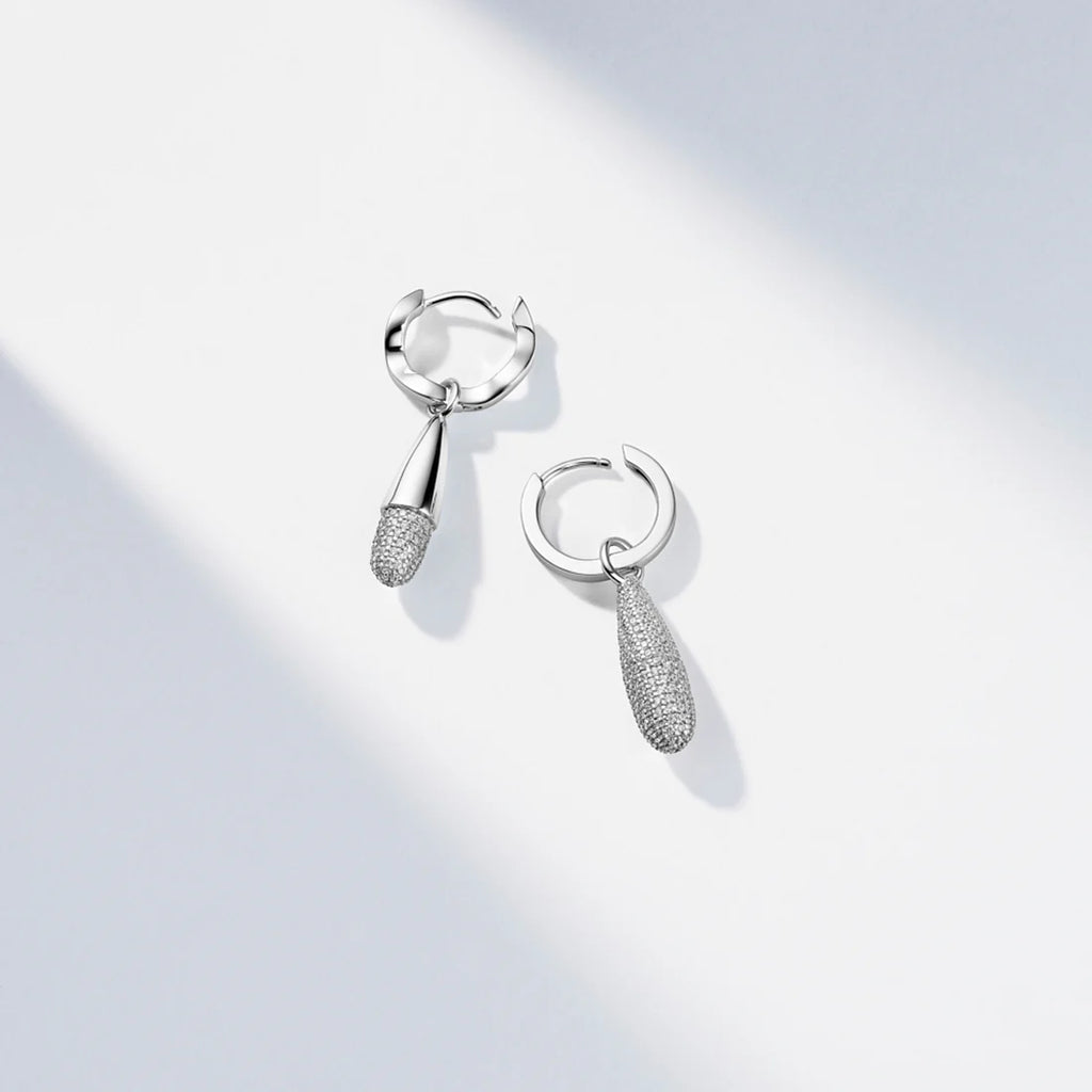 Charm for any compatible hoop made of rhodium plated 925 Sterling Silver, a polished surface, and handset with facet cut white zirconia