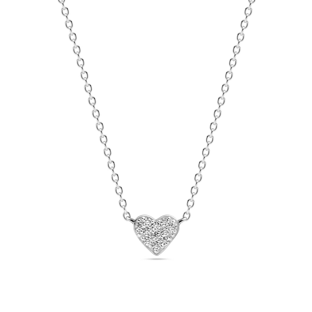 Necklace made of rhodium plated 925 Sterling Silver, a polished surface, and handset with facet cut white zirconia.