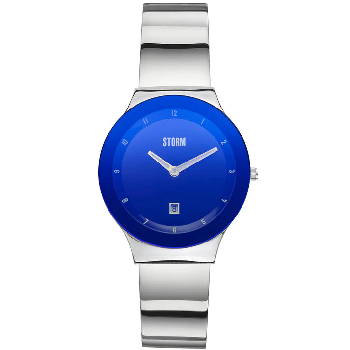 The STORM Lucki is a modern classic with an edgy twist. Featuring STORM’s signature lazer blue glass and ultra-slim edge-to-edge design, its polished stainless steel case and semi-bangle strap exude sleek sophistication. Perfect for everyday wear, Lucki combines style with function, boasting a date feature in a strikingly unique silhouette.